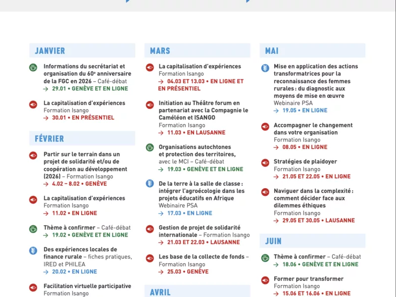 Émissions et publications consacrées à la coopération au développement, comptes-rendus de tables rondes, replays de conférences : parcourez les dernières actualités de la FGC et de nos organisations membres.