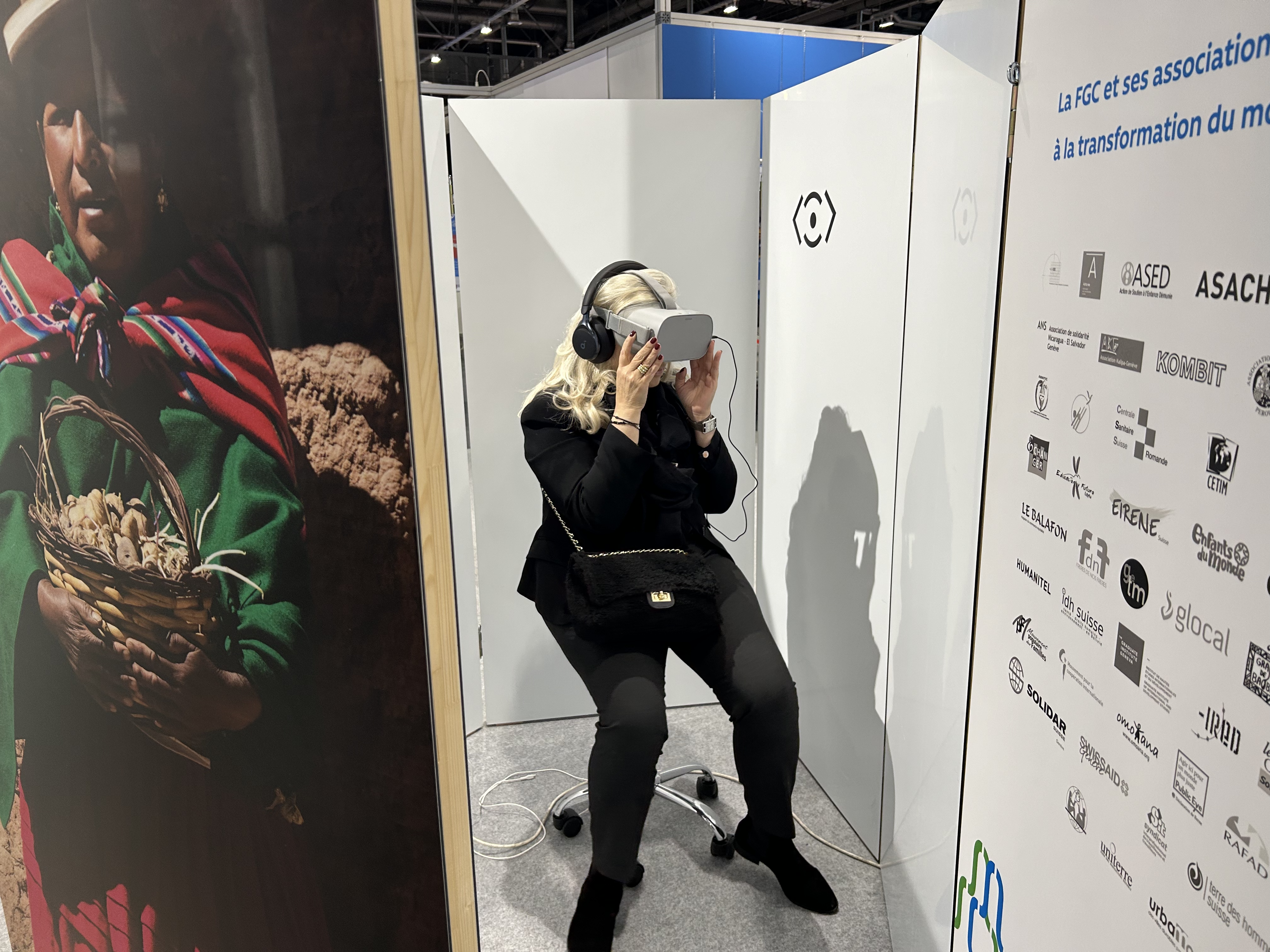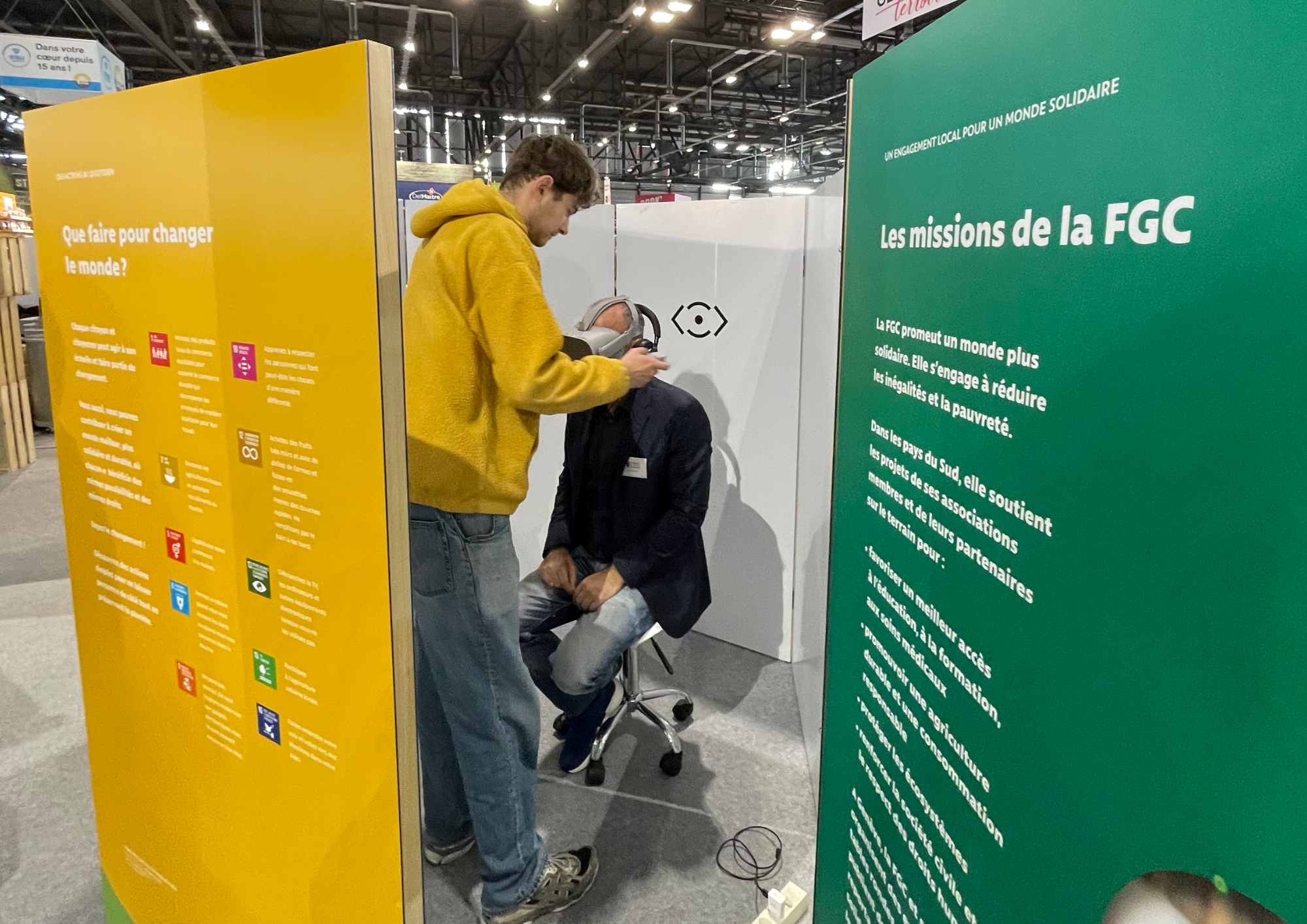 Samedi 16 novembre 2024, une quarantaine de visiteuses et de visiteurs, dont la présidente du Conseil d'État, Nathalie Fontanet, ont visité le stand de la FGC aux Automnales. Il était situé dans l'espace du Canton de Genève. L'installation de réalité virtuelle «360° sur le monde» a permis au public de découvrir des projets de développement en 3 D.