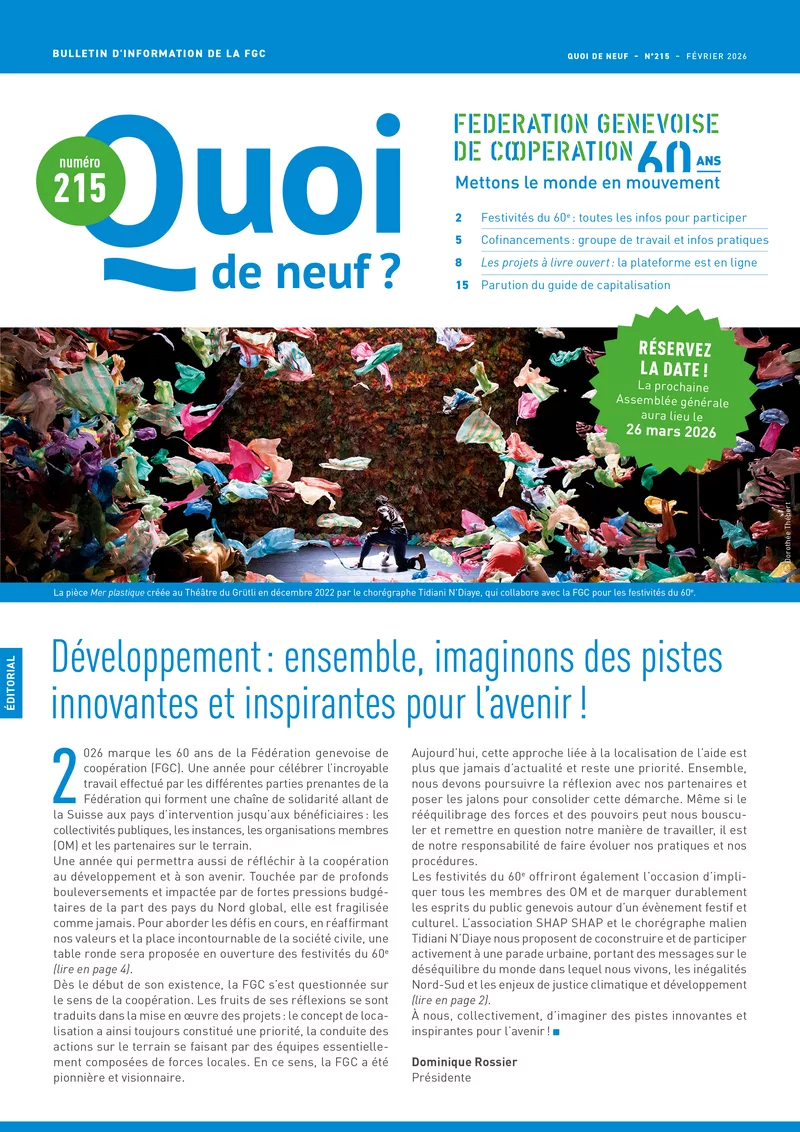 Susciter le débat sur la coopération au développement et les enjeux globaux, informer et sensibiliser les citoyen·ne·s genevois·e·s ainsi que les membres de la FGC sur la solidarité internationale, font partie de nos missions.