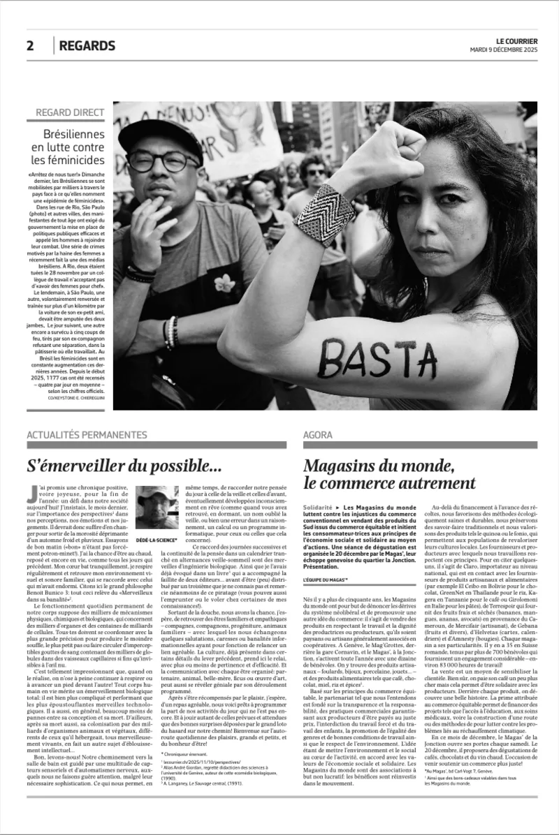 • les pages spéciales publiées par la FGC dans «La Tribune de Genève»;